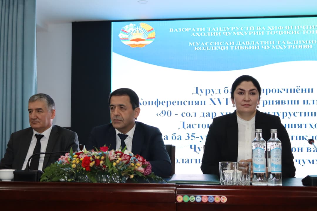 КОНФЕРЕНСИЯИ XVI – УМИ ҶУМҲУРИЯВӢ ТАҲТИ УНВОНИ “90 – СОЛ ДАР ҲИФЗИ ТАНДУРУСТИИ АҲОЛӢ. ДАСТОВАРДҲО ВА ИМКОНИЯТҲО” БАХШИДА БА 90 – СОЛАГИИ КОЛЛЕҶИ ТИББИИ ҶУМҲУРИЯВӢ ВА ИСТИҚБОЛИ 35 СОЛАГИИ ИСТИҚЛОЛИ ДАВЛАТИИ ҶУМҲУРИИ ТОҶИКИСТОН
